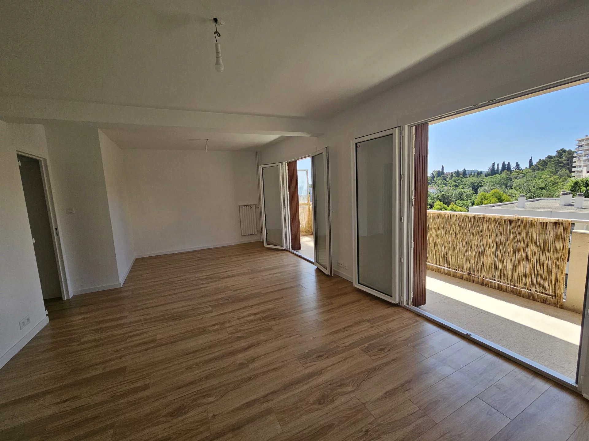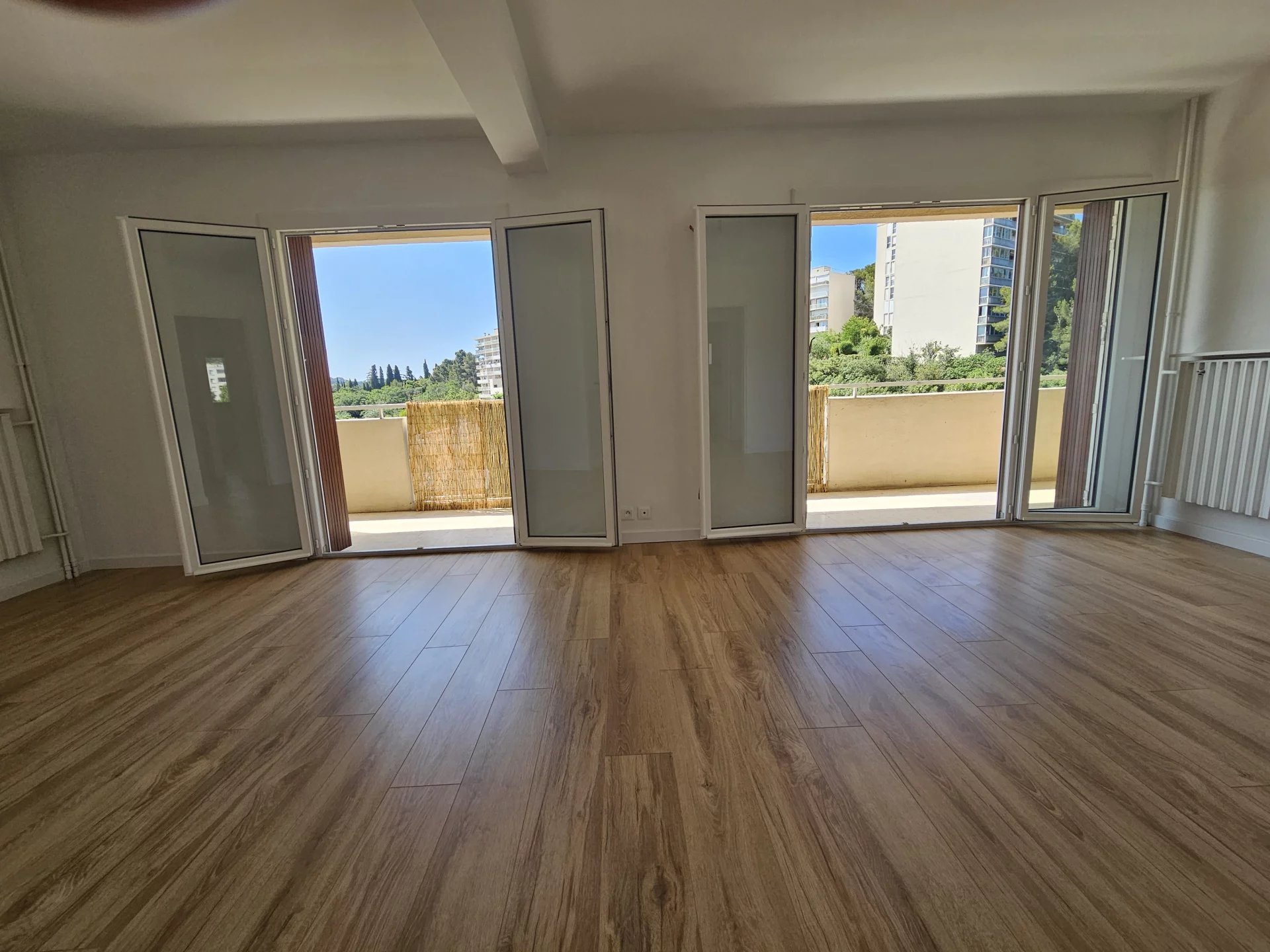 Un vaste salon / salle à manger baigné de lumière, ouvrant sur un grand balcon filant offrant une vue dégagée sans vis-à-vis ;